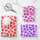 Dieses Set aus 3 Packpapieren zeichnet sich durch ein rotes, rosa und lila Leopardenherzenmuster aus.