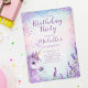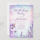 Niedlicher Lila Regenbogen-Glitzer Floral Unicorn Geburtstag Einladung