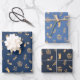 Wrap deine Geschenke mit diesem modernen und niedlichen Weihnachts-Weihnachtsgeschenk Geschenkblätter entworfen mit goldenen Weihnachtssocken, Kirschen, Geschenke und Blätter im marineblauen Hintergrund.