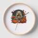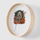 Niedlicher Mops Hund mit Kürbiskins fallen Hallowe Uhr