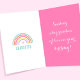 Mit dieser personalisierten Grusskarte senden Sie magische Wünsche an einem besonderen Geburtstag. Ein niedliches Einhorn umgeben von Ballons, Herzen und Sternen. Dieses stilvolle Template enthält den Satz "Magische Wünsche & Unicorn Kisses" in trendigem Skript und ist mit dem Namen des Empfängers personalisiert. Im Inneren erwarten Sie ein bunter Regenbogen und die Nachricht "Einen großen Regenbogen der Liebe zum Geburtstag senden". Fügen Sie eine persönliche Touch mit einer benutzerdefinierten Nachricht auf der Rückseite hinzu. Der gesamte Text kann für eine wirklich einzigartige Karte angepasst werden Perfect für ein kleines Kind, eine Tochter, eine Schwester, eine Enkelin, eine Nichte oder einen Freund. Farben: Pastellpfirsich, Rosa, Gelb, Blau-Grün, Lavendelblau und Gold. Erhältlich als gedruckte Karte oder als digitaler Download.