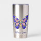 Niedlicher blauer rosa goldfarbener Schmetterling Blumenname Personalisiert isolierter Schuster. Perfektes Geschenk für die Zuhause, im Freien, zurück zur Schule oder ins Büro.