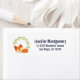 Adressetikett mit einem Cartoon, der von einem niedlichen orangefarbenen Fuchs zeichne, der friedlich schläft. Hinter einem grünen Blätter liegt ein Kranz.