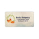 Adressieren Sie Labels mit einem Cartoon, der von einem niedlichen orangen Fuchs zeichne, der friedlich schläft. Hinter einem grünen Blätter liegt ein Kranz. Ein cremefarbener Hintergrund mit schwachen geometrischen Formen.