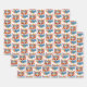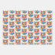 Papierblätter mit einer gemusterten Illustration eines bezaubernden Fuchsporträts mit blauen und orangefarbenen Kronen und Kragen.