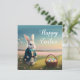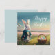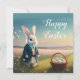 Niedlicher Osterhase mit blauer Jacke Karte