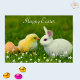Niedlicher Osterhasen mit Küken und Blume Frohe Osterkarte. Text kann zu Ostern oder zum Geburtstag personalisiert werden.
