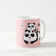 Stellen Sie eine personalisierte Tasse für wenig mit diesem niedlichen Pandajungs- und -mamaentwurf her! Er hat einen niedlichen Babypanda, auf den Kopf des Mamapandas stillzustehen. Eine kleine Herzspracheblase drückt aus, wie glücklich sie, mit Mamma dort gerade herum zu liegen ist. Ein Bambusmuster für den Hintergrund, in dem die Hintergrundfarbe zu den Anzugs Jungen und -mädchen geändert werden kann.