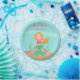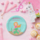 Spielen Sie Ihr Meerjungfrauphantasie-Thema-Party mit diesem niedlichen Meerjungfrau-Party-Papier-Teller aus. Es hat eine Meerjungfrau mit der rosa Spitze, die auf einem Felsen im Ozean sitzt. Groß für Geburtstagsmädchen, die unter dem Meer und den Unterwasserthemen feiern! Fügen Sie Ihre Mitteilung im bereitgestellten Raum hinzu.