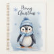 Eine bezaubernde Winter-Illustration eines zauberhaften Pinguins mit einem blau gestreiften Hut und Schal, der ein gemütliches und festliches Ambiente bringt. Die sanften Schneeflocken und sanften blauen Farbtöne im Hintergrund schaffen eine zauberhafte Winteratmosphäre. Ideal für Weihnachtskarten, Plakate, Aufkleber und saisonale Handwerkskunst!