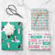 Niedlicher Pinguin Winterspass Rosa & Aquamarin Geschenkpapier Set