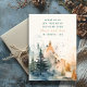Niedliche Aquarell nebelige Kiefernwald Weihnachtsgrüße Karte. Die Kiefern, die in sanften Grün-, Grau- und Blautönen gestrichen sind, scheinen in einen Nebel zu verblassen, der den Hintergrund abdeckt und eine traumhafte, ätherische Atmosphäre schafft. Das Design der Karte ist ausdrucksstark und verlasst viel Platz für eine herzliche Botschaft. Es erfasst die stille Schönheit der Natur, perfekt, um Gefühle der Ruhe, des Komforts oder der Inspiration zu senden. Ein einfaches, elegantes Skript, das Sie leicht personalisieren können, könnte das Kunstwerk ergänzen und einen warmen Gruß hinzufügen, der die ruhige, reflektierende Stimmung der Szene widerspiegelt.