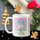 Eine bezaubernde Tasse für Kinder, die ihren heißen Kakao trinken, mit einem zauberhaften Eisbärchen, der ein Weihnachtsgebäck genießt. Personalisieren Sie es mit einem Namen. © ArianeC Illustrations-Alle Rechte vorbehalten