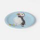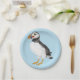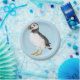 Eine gemalte Abbildung eines Puffins. Dieser niedliche Vogel wird im Stil einer Kinderbuch-Abbildung gezeichnet. Sie hat Stiche und Fäden auf ihren Federn. Ein Design für alle, die Puffins Lieben.