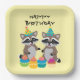 Niedlicher Raccoon Geburtstagsparty hellgelb Pappteller