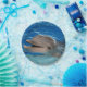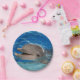 Niedlicher Delphin, der seinen Kopf aus dem Wasser heraus beim Rattern haftet.