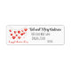 Dieses niedliche Rotherz-Adressetikett zeigt einige rote Herzen, die wie niedliche Ballons an der Saite hängen. Die Ballonherzen schweben etwas durch die Luft. Personalisieren Sie diese Adressetiketten, indem Sie Adresse und Namensangaben sowie Schriftart und Farbe ändern, wenn Sie möchten. Viel Spaß!