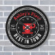 Personalisieren Sie diese runde Kaffeetasse themed Wand Uhr mit Ihrem Namen und anderen Text. Editieren Sie einfach im einfachen Zazzle Editor. Erstellt mit einer einfachen rot-weißen Kaffeetasse mit weißen Akzenten auf schwarz in einem stilvollen Retro Logo-Ambiente.