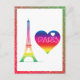 Jeder würde Liebe haben, diese niedliche, gürtelige Postkarte mit einem Regenbogenherz und einer farbenfrohen Abbildung des Eiffelturms in Paris zu erhalten!