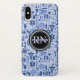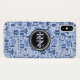Medizinisches Muster mit Monogramm, medizinischen des Musterblaus registrierte Krankenschwester Falles iphone in den Schatten des Blaus mit Stethoskopen, Caduceussymbolen, Krankenwagen, Spritzen, Verbände und mehr. Zentrierter, mit Monogramm Name im zusammenpassenden Blau bedeckt auf den Buchstaben "RN" auf schwarzem Kreis. Perfekter iphone Fall für pflegenstudenten oder Abschlussgeschenk für medizinische Studenten.