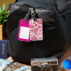 Niedlicher retro Eulen-Blumenvogelmuster-Reiseumbau. Niedliches retro Illustrationsmuster etikettiert für Mädchen oder Kinder. Niedliches Weihnachten oder Feiertagsgeschenk für Ihren Reisekoffer. Karo heraus andere Entwürfe in meinem designalicious Speicher!
