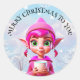 Niedlicher Rosa Elf mit Kaffee oder Kakaowein Runder Aufkleber