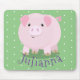 Es macht Spaß! Dieses bezaubernde Bauchschwein wird einem Kind etwas Glück geben. Gezeichnet im niedlichen Cartoon-Stil auf einem hellgrünen Polka Punkt Hintergrund.
