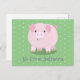 Es macht Spaß! Dieses bezaubernde Bauchschwein wird einem Kind etwas Glück geben. Gezeichnet im niedlichen Cartoon-Stil auf einem hellgrünen Polka Punkt Hintergrund.