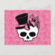 Niedlicher Schädel mit Top Hat-Rose, rosa Bow-Post Postkarte