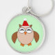 Dieser niedliche Schlüsselanhänger besticht durch einen lustigen Cartoon einer Weihnachtskeule mit schläfrigen Augen, einem kleinen orangefarbenen Schnabel und niedlichen orangefarbenen Füßen. Die Eule ist braun mit einem cremefarbenen Bauch und trägt eine rot-weiße Weihnachtsmannmütze, die zu Weihnachten bereit ist.