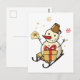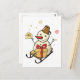 Niedlicher Schneemann auf Schlitten Postkarte