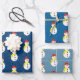 Niedlicher Schneemann und blauer Schnee Geschenkpapier Set