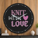 Niedlicher, schwarz rosa Strick mit Liebe Große Wanduhr