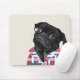 Niedlicher Schwarzer Mops Hund mit Brille und Karo Mousepad