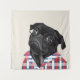 Niedlicher Schwarzer Mops Hund mit Brille und Karo Wandteppich