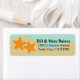 Eine niedliche Abbildung zweier Seesterne, die auf dem Sand neben dem Meer liegen. Personalisieren Sie diese Beachadressen mit Ihrem Namen und Ihrer Adresse.