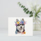Niedlicher sibirischer Husky-Hund mit Blume Postkarte