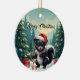 Niedlicher Skunk Cartoon - Funny Weihnachtsmannmütze Skunk mit Candy Cane & Gifts. Mit diesem bezaubernden Weihnachtsschunk-Cartoon lassen Sie Ihren Urlaub fröhlich werden! 🦨 🎅 mit einer Weihnachtsmannmütze und einem Zuckerrohr und einem roten Ornament besticht dieser schwarz-weiße Stein in einer schneebedeckten Winterlandschaft mit dekorierten immergrünen Bäumen und festlichen Geschenkboxen. Ideal für Tierfreunde, Cartoon-Fans und für alle, die Spaß an lustiger und niedlicher Urlaubskunst haben.