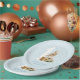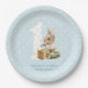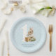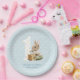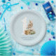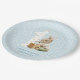 Feiern Sie den ersten Geburtstag Ihres Kindes mit diesen niedlichen sonnigen Tellern. Das Design bietet einen sonnigen Rahmen, der ein Geburtstagsgeschenk entpackt. Hinter ihm steckt eine weiße Zahl 1 mit bunten Punkten. Der Hintergrund ist ein subtiles hellblaues Muster. Sie können diese Teller mit einem Namen personalisieren.
