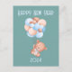 Niedlicher Teddy Bären Ballon Neujahr Graugrün Postkarte