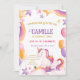 Dieses niedliche und mädchenhafte Kindergeburtstag-Einladungs-Design verfügt über ein magisches Einhorn mit Regenbogen, Ballons und Sternen und kann mit allen Informationen personalisiert werden, die Sie für das Party Ihres Kindes in einer skurrilen Typografie benötigen. Die perfekte Einladung zum Geburtstag Ihres kleinen Kindes, individuell für jedes Alter!