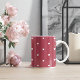 Diese niedliche Tasse zeichnet sich durch ein kleines weißes Herzmuster im Polka-Dot-Stil auf bordeauxrotem Hintergrund aus. Eine tolle Geschenkidee zum Valentinstag! *Mockup von alexandercho auf freepik.com*