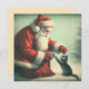 Hier ist eine niedliche Karte mit einer Vintagen Abbildung des Weihnachtsmannes, der einem Kätzchen im Schnee ein Geschenk macht. Es ist eine süße Karte, die man als Weihnachtskarte schicken oder mit einem Geschenk geben kann! Diese Karte wird besonders für einen Katzenliebhaber oder jemanden, der Retro-Kunst und Designs mag, gut geeignet sein.