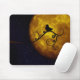 Niedliche Vogel-Silhouette hockte auf Wirblen Mustern im Mondschein.
