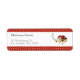 Adorable Rücksendeadressen-Aufkleber in Rot mit Polka-Punkten mit einer Abbildung eines Piratenvogels mit seinem Pflaster, seiner Bandana und seinem Schwert. Ändern Sie den Text für sich. Illustriert und entworfen von Patricia Alvarez.