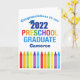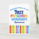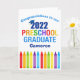 Die 2022 bewundernswerte Vorschulkarte mit einer coolen Gradmütze über farbenfrohen Schriften und einer Reihe von Abschlüssen im Regenbogen. Niedliche Vorschulabsolventen Gratulationen Karte in lustigen Farben für den letzten Tag der Grundschule mit dem Namen Ihres Kindes personalisiert in blau. Herzlichen Glückwunsch an unseren PreK grad!