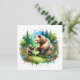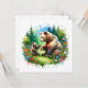 Ein Mammutbär spielt draußen mit ihrem Baby-Cubbär auf einem Feld aus Gras und Blume mit Kiefernhintergrund. Wasserfarben Stil ai art.