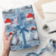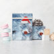 Erstellen Sie schöne decoupage Handwerke oder nutzen Sie dieses Papier, um Ihre Urlaubsgeschenke zu verpacken. Dieses Papier zeigt einen Wintersaisonuntergrund mit einem grauen Eichhörnchen, das eine Weihnachtsmannmütze trägt. Das Eichhörnchen hält ein rotes Weihnachtsgeschenk. Ein einzigartiges Design, das Kindern und Erwachsenen gefallen wird.