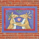 Vintage Illustration Frohe Weihnachtsgestaltung mit einem Liebe- und Romantik-Design mit zwei bezaubernden Rentieren Küssen unter dem Mistleton. Zwischen ihnen liegt ein Herz. Ein lustiges, albernes und romantisches Cartoon-Design für Tierfreunde.