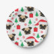 WeihnachtsMopshundezucht-Papier-Teller mit Bäumen, Geschenken, Schneeflocken, Weihnachtsmannmützen und Möpse!